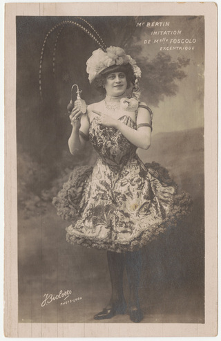 Collection: Postcards of Female and Male Impersonators and Cross-dressing Institution: Human Sexuality Collection, Cornell University Creator: J. Bioletto, Bertin, Robert Date: circa 1907 Topics: Female impersonators Subject: Robert Bertin Description: Divided verso; notice printed full width indicating "Tous les pays étrangers n'acceptent pas la correspondance au recto. (Se renseigner à la poste [sic]"