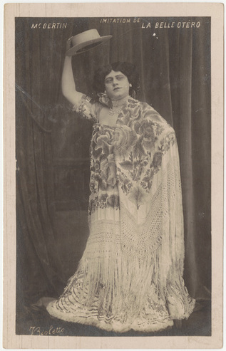 Collection: Postcards of Female and Male Impersonators and Cross-dressing Institution: Human Sexuality Collection, Cornell University Creator: J. Bioletto, Bertin, Robert Date: circa 1907 Topics: Female impersonators Subject: Robert Bertin Description: Divided verso; notice printed full width indicating "Tous les pays étrangers n'acceptent pas la correspondance au recto. (Se renseigner à la poste [sic]" -