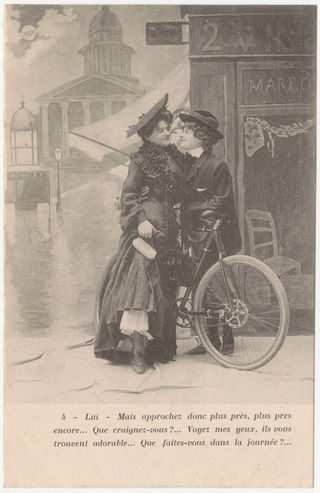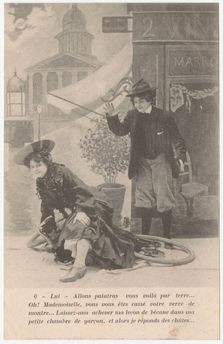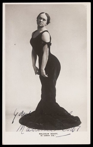 Malcolm Scott in character as a "Gibson Girl". Photographic postcard, 191-.