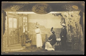 Actors performing 'L'idée de Françoise'. Photographic postcard, 191-.