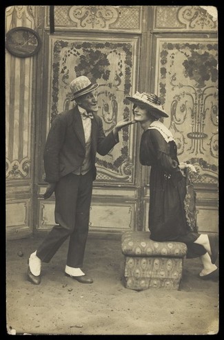 Harold Chapman and Mark Leslie performing a revue for the Bow Bells. Photographic postcard, 191-.