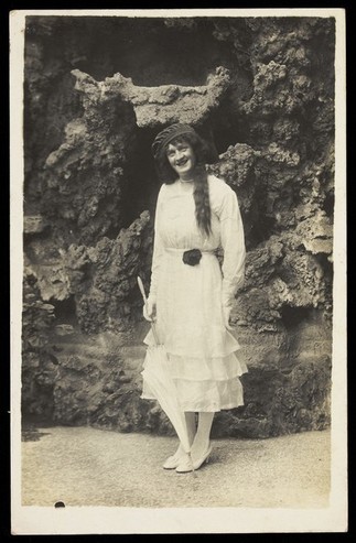 An actor poses in character, as "Auntie Casey" (?). Process print, 191-.