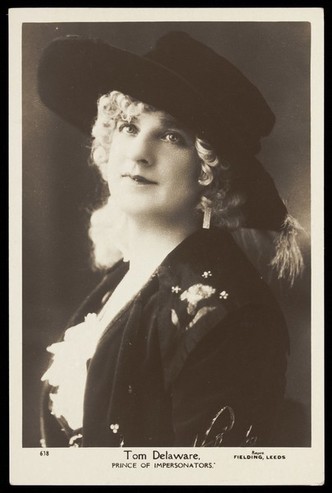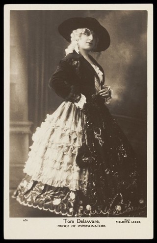 Tom Delaware in drag. Photographic postcard by Fielding, 192-.