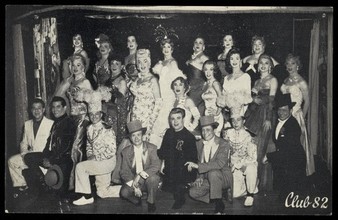 A large group of men in drag at Club 82, New York City. Process print, 196-.