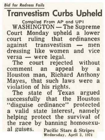 Bid for Redress Fails: Tranvestism Curbs Upheld