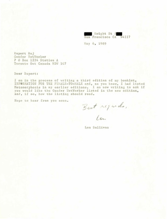 Correspondence from Lou Sullivan to Jude Patton (May 6, 1989)