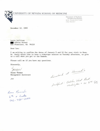 Correspondence from Susan Thomas to Lou Sullivan (December 12, 1989)