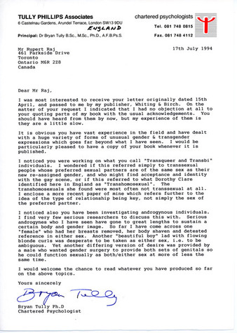 Letter from Diane Middlebrook to Rupert Raj (June 21, 1994)