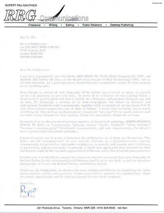 Letter from Diane Middlebrook to Rupert Raj (May 21, 1994)