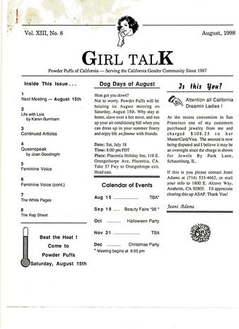 Girl Talk, Vol. 13 No. 8 (August, 1998)