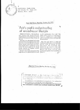 Fair's Goal is Understanding of Crossdresser Lifestyle (October 12, 1978)
