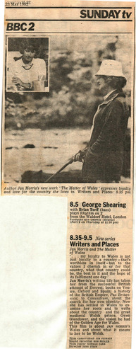 Collection: Newspaper and Periodical Clippings (1950-2000) Institution: Transgender Archives, University of Victoria Creator: Date: May 23, 1982 Topics: Gender identity, MtFs, Transsexual people, Writers Subject: Jan Morris, The Matter of Wales Description: Clipping originally collected by Richard Ekins (from The University of Ulster Trans-Gender Archives/Richard Ekins collection at the Transgender Archives, University of Victoria) -
