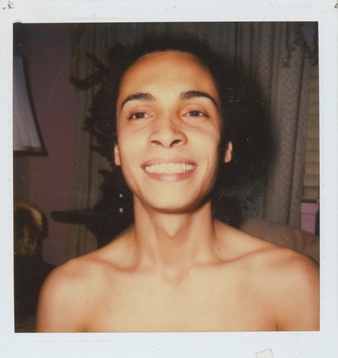 Collection: Miscellaneous Photographs Institution: The Lesbian, Gay, Bisexual & Transgender Community Center Creator: Date: Unknown Topics: QTPOC, Trans women Subject: Malú Rivera Description: A photograph of Malú Rivera wearing a black mask and smoking a cigarette. In the second photo, the mask is on Malú's forehead and she is smiling.