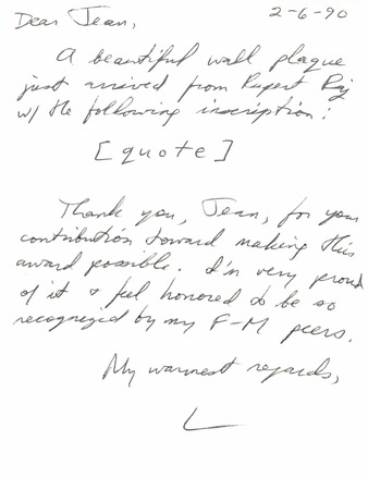 Correspondence from Lou Sullivan to Jean Aarle (February 6, 1990)