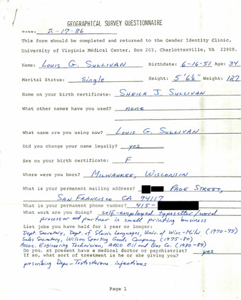 Lou Sullivan's Completed Application for the Stanford University Gender Dysphoria ...