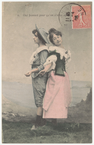 Collection: Postcards of Female and Male Impersonators and Cross-dressing Institution: Human Sexuality Collection, Cornell University Creator: Date: 1906 Topics: Male impersonators Description: Inscription: "All the cards are addressed to Angèle Lobet in Reims; most are signed by Blanche or “Bl. Lobet,” but one with a brief message in a shaky hand with a spelling correction is signed Pier... -