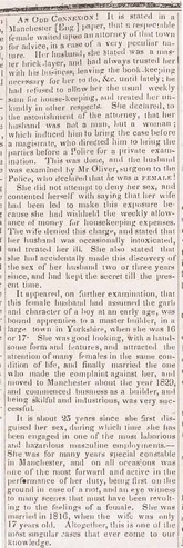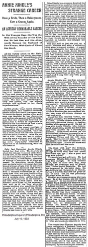 Collection: Newspaper and Periodical Clippings (Pre 1900) Institution: JD Doyle Archives Creator: The Philadelphia Inquirer Date: Jul. 10, 1892 Topics: Crossdressing, Drag kings, Drag queens, Male impersonators, Weddings Subject: Annie Hindle, Annie Ryan, Charles Hindle, Charles Vivian, G. C. Baldwin, Gilbert Saroney, Louise Spangehal -