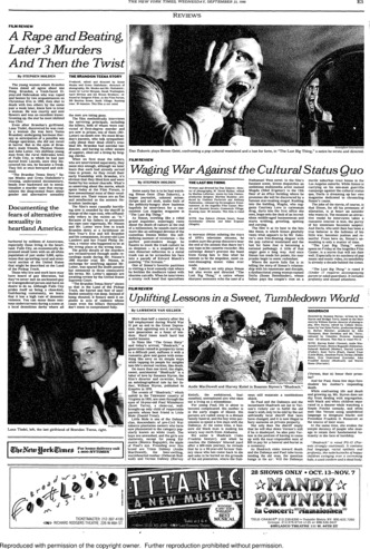 Collection: Brandon Teena Collection Institution: Digital Transgender Archive Creator: Holden, Stephen Date: Sep. 23, 1998 Topics: Hormone therapy (Gender), LGBTQ+ victims of hate crimes, Mental health care for LGBTQ+ people, Murders of LGBTQ+ people Subject: April Stevens, Brandon Teena, Brown Brothers, Dinah Washington, Greta Olafsdottir, John Lotter, Lana Tisdel, Lisa Lambert, Lorrie Morgan, Philip Devine, Susan Muska, The Brandon Teena Story, Thomas Nissen Description: A short film review of "The Brandon Teena Story." Published in The New York Times on September 23rd, 1998. Content warning: This item relates to the death of Brandon Teena, who was murdered and... -