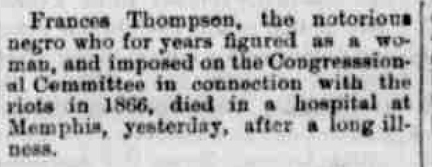 An article that mentions the passing of Frances Thompson.
