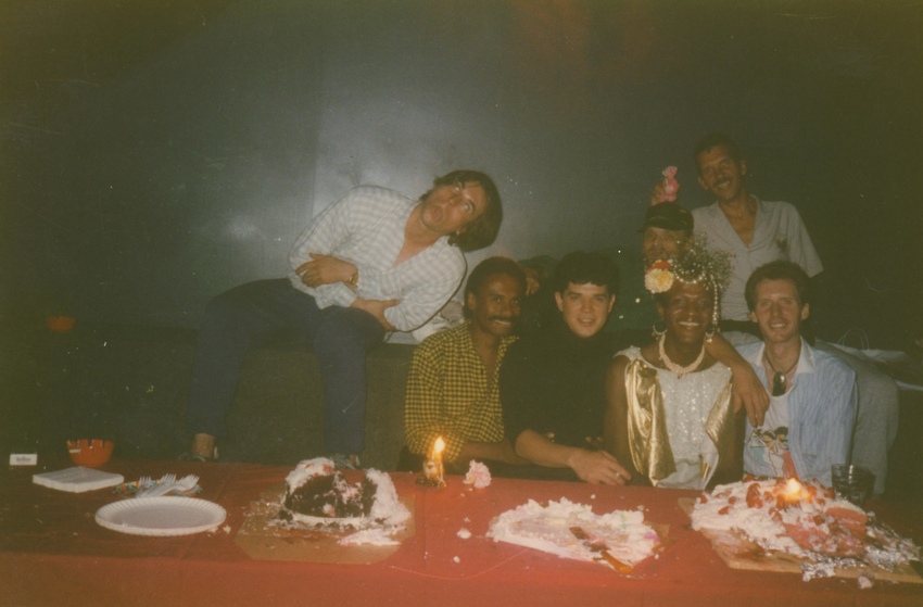Photographs Featuring Marsha P. Johnson with Friends at Her Birthday Party, Serving Cake