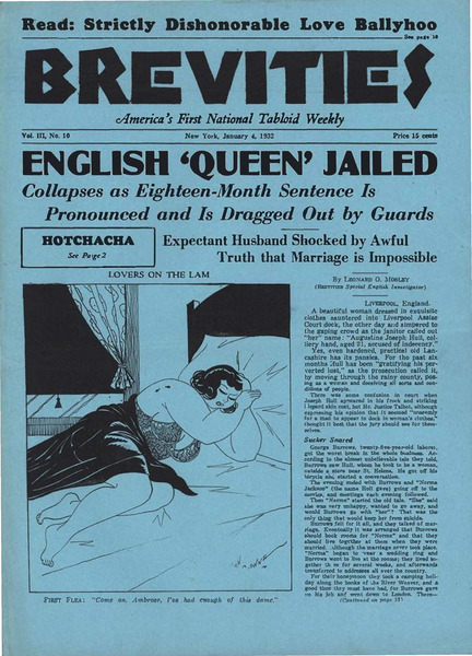 First page only of article published in Brevities: America's First National Tabloid Weekly, Vol. III, No. 10 on January 4, 1932.