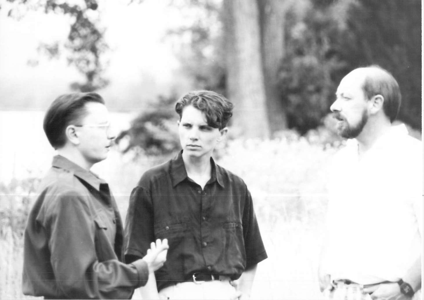 From left to right; Bet Power, Jacob, and Mikel-Jon Carter are photographed as Bet speaks to the others.