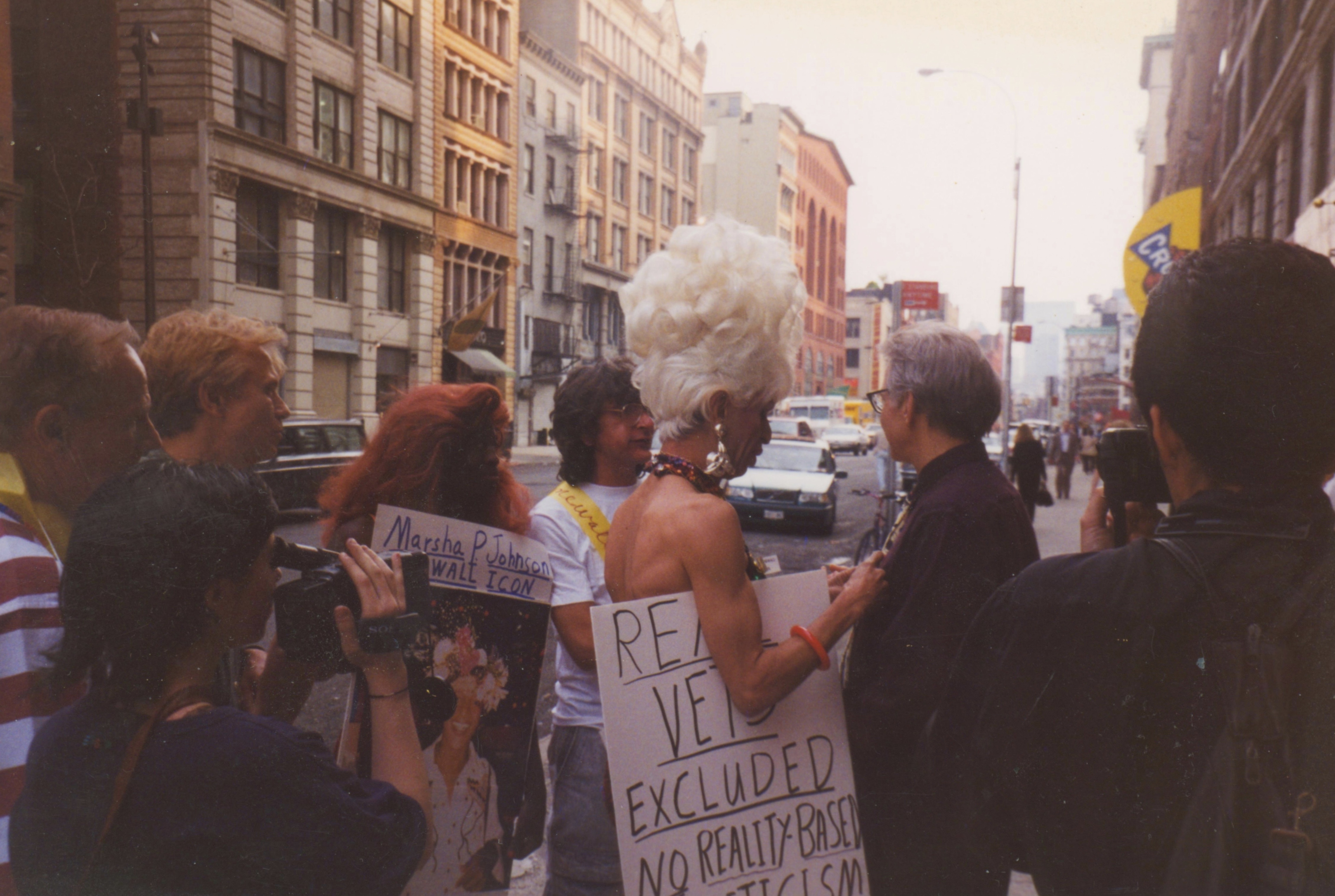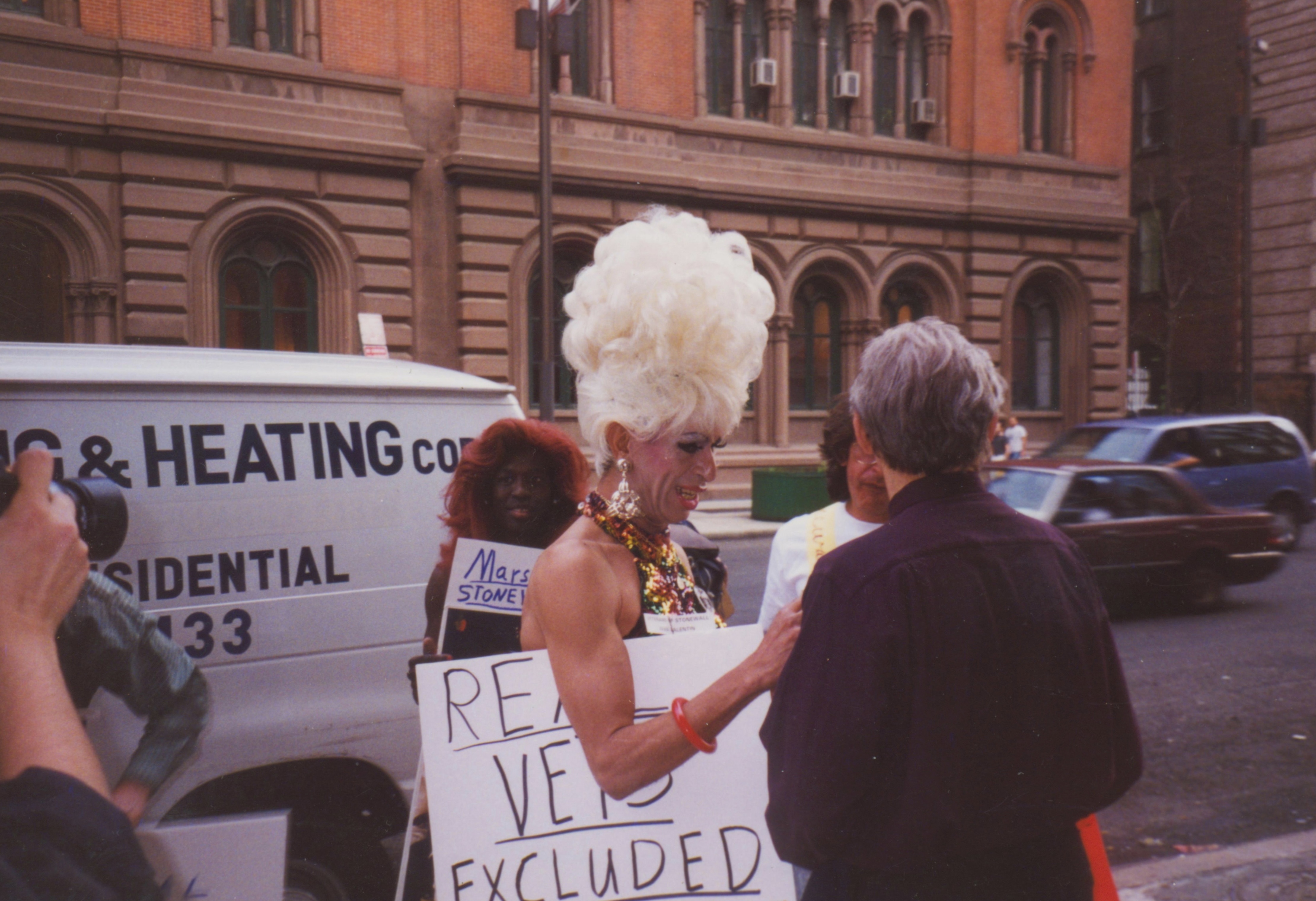 Photographs of Sylvia Rivera Protesting the 1996 "Stonewall" Film with a Group Including Ivan Valentin, Cocoa Rodriguez, Randy Wicker, and Martin Duberman